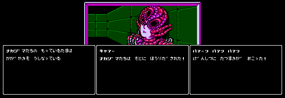 ※携帯版の女神転生における『オークのつのぶえ』の効果について 上記質問の回答を数多く頂いており、大変感謝に堪えません。 ですが、仮にも当方もメガテンsiteの管理人、携帯版のそのITEMの効果、 シュオル聖塔への行き方、ソコで手に入るITEMの使用場所等、多数のご教授を頂きまして、 理解しております。 ですが、当siteは『FC版の』女神転生の攻略siteですので、 携帯版のオリジナルステージの行き方や攻略記載は考えておりません。 故に、その部分には手を加えてない訳です。 あくまで『FC版女神転生』と言うモットーでこのsiteを作っている、と言う事をご理解いただけますよう、宜しくお願い致します。 2005/01/20 魂太郎@regamer 拝 |